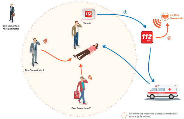 Cette application géolocalise les volontaires et en cas d'arrêt cardiaque, les pompiers du CTA/CODIS peuvent prévenir un ou plusieurs "bon samaritain" proche(s) des lieux de l'intervention. Ainsi ces "bons samaritains" peuvent pratiquer les premiers gestes de secours avant l'arrivée des sapeurs-pompiers.