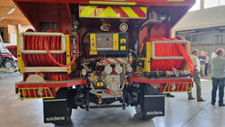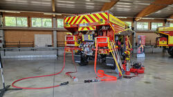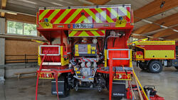 Une motopompe flottante sur le toit permet aux sapeurs-pompiers de se réalimenter en eau sur des plans d'eau naturels, évitant ainsi de puiser dans les réseaux communaux.