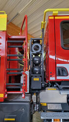 A noter que le système d’autoprotection permet de protéger le véhicule le temp que le feu « passe sur le véhicule » soit 6 minutes avec un débit des buses de 60 litres/minute. Ils disposent également, pour parfaire l’autoprotection, d’un vitrage renforcé et d’une cabine alimentée en air respirable pour 5 personnes.