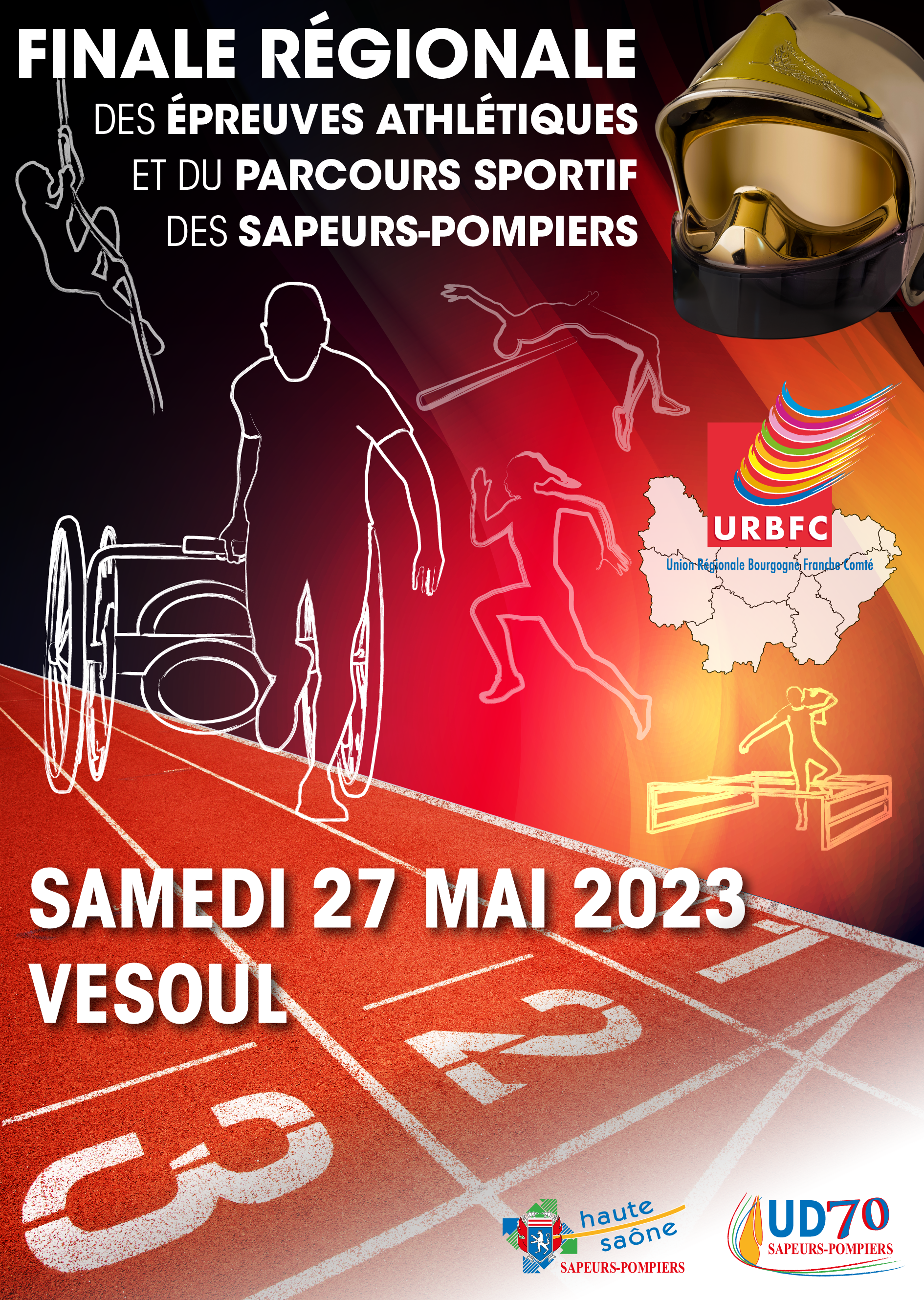 Dans le cadre de la préparation du congrès régional URBFC ainsi que de la finale régionale des épreuves athlétiques et du parcours sportif des sapeurs-pompiers des 26 et 27 mai 2023 prochains à Vesoul, vous trouverez ci-dessous :