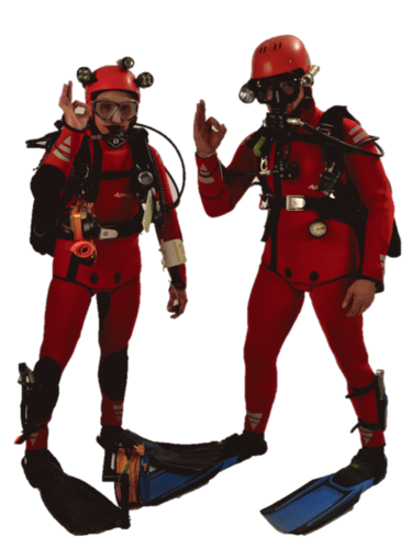 Palmes, masque, tuba, combinaison néoprène, gilet de stabilisation avec bloc de plongée, profondimètre, montre, couteau ou sécateur, éclairage constituent l’équipement de base d’un SAL.