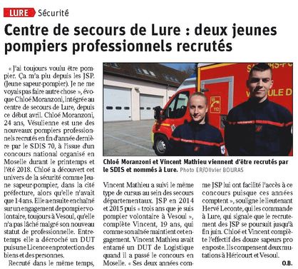 C’est le cas par exemple de Chloé Moranzoni, aujourd’hui sapeur-pompier professionnelle dans la cité luronne.