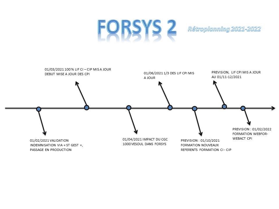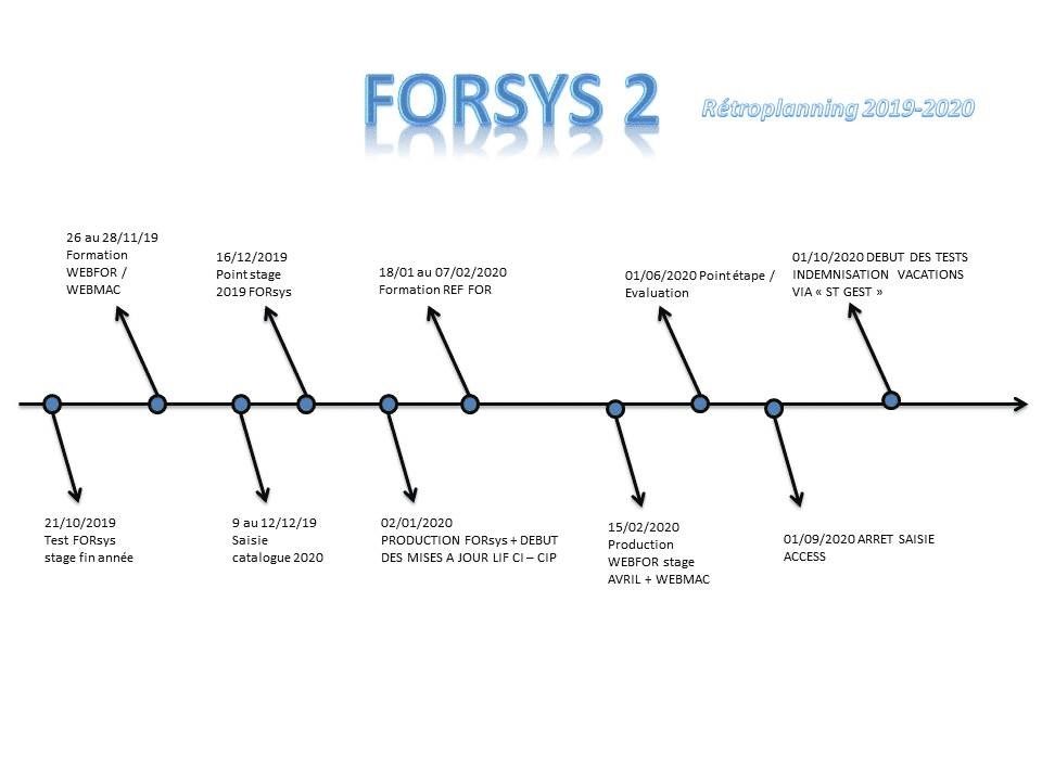 A noter qu’en début d’année, les prévisions et objectifs fixés pour la mise en œuvre de FORSYS étaient tenus. Cependant, depuis quelques semaines, la charge de travail engendrée par la gestion des plannings du CGC 1000 (réalisée par le service "formation") a contraint le groupement à définir un nouveau rétroplanning.