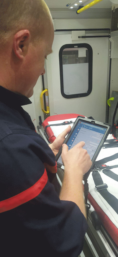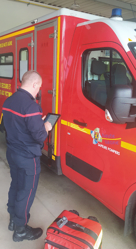 Depuis janvier, le SSSM travaille en effet, en lien avec la société APROPOS et le groupement "Opération et transformation Numérique", à la conception d’une fiche bilan 2.0 qui, comme la version papier, applique le même principe du "traiter en premier ce qui tue en premier". Plusieurs versions ont été développées, au moyen d’un logiciel acquis par le SDIS en décembre dernier, avant d’arriver à un résultat satisfaisant. Début avril, la version 3 de la fiche bilan numérique a été déployée pour test dans les centres de Vesoul, Luxeuil et Héricourt. Cette expérimentation d’un mois a permis de perfectionner la fiche et de corriger les bugs. Sauf contre-temps, le déploiement progressif de la fiche numérique dans tous les VSAV du corps départemental débutera en juillet prochain. Même si le principal utilisateur restera le chef d’agrès du VSAV, l’ensemble des sapeurs-pompiers du corps départemental devront au préalable être formés. Cependant, que chacun se rassure. Les retours des premiers utilisateurs-testeurs sont positifs. Ces derniers rapportent en effet que la prise en main de l’application est facile et que la fiche numérique est très rapide à compléter. Cette dernière apporte également, grâce à ses nouvelles fonctionnalités, une véritable plus-value en matière de prise en charge des victimes et de remontée des informations médicales au CRRA15. Les tablettes peuvent par exemple être connectées avec les moniteurs Corpuls des VSAV, ce qui permet de rentrer les paramètres directement dans la fiche bilan après mesure. Les tablettes permettent également de prendre des photos pour illustrer la fiche bilan (ordonnance de la victime, plaie avant de la couvrir d’un pansement, scène générale lors d’un AVP, etc.). Elles facilitent aussi la réalisation de scores de gravité comme Glasgow, coma score ou encore score de Malinas en cas de menace d’accouchement. Par ailleurs, pour assurer la transmission de ces informations, un serveur inter opérabilité est en cours de mise en place. Il permettra aux services destinataires (SAU du GH 70, CH Trevenans, CHU Minjoz…) de visualiser et récupérer leurs fiches bilan Le serveur sera opérationnel fin juin. Dernière précision : une fois la victime déposée à l’hôpital, la fiche sera ensuite clôturée et archivée sur le serveur interne du SDIS. La mise en place des fiches bilan numériques va permettre au SDIS de disposer d’un outil fiable, facilitant les interventions et assurant une véritable traçabilité de nos interventions. Le passage au numérique va également faciliter l’analyse de nos pratiques en vue de faire évoluer la formation et les matériels en rapport avec la réalité du terrain.