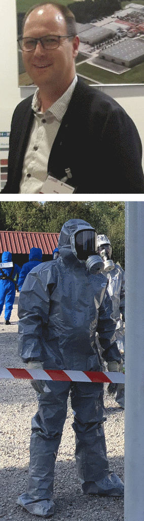 Pour le moment (et heureusement pourrais-je ajouter !), mes missions sont inexistantes ou presque. Par contre, en cas d’accident chimique (accident impliquant un véhicule de transport de matières dangereuses, accident dans un site industriel ou attentat chimique par une organisation terroriste), elles pourraient consister à apporter des conseils, de l’aide sur le terrain. En ce qui concerne le transport de matières dangereuses, je suis d’ailleurs "conseiller à la sécurité matières dangereuses" depuis 18 ans. Ce diplôme est renouvelé tous les cinq ans.
