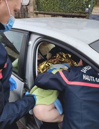 sur un parking à Port sur Saône. Le bébé et sa maman se portent bien.