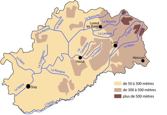 La Haute-Saône est située dans l’Est de la France et occupe le Nord de la région Franche-Comté. Le département est limitrophe avec le Territoire de Belfort, le Doubs, le Jura, la Côte-d’Or, la Haute-Marne et les Vosges. Il s’étend sur 5 360 km² et figure parmi les premiers départements boisés de France (42 % de sa superficie est occupée par des forêts). C’est aussi un département où l’eau est très présente. On compte 3 450 km de ruisseaux et de rivières et plus de 4 000 étangs et lacs.